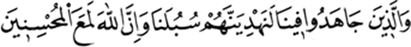 Το ένδοξο του νόημα «Και εμείς σίγουρα, δείχνουμε τους δρόμους μας σε αυτούς που αγωνίζονται για χάρη μας (για τη πίστη). Και δεν υπάρχει καμία αμφιβολία ότι ο Αλλάχ είναι μαζί με τους καλοήθεις, (με τους αγωνιστές οι οποίοι προσκυνούν σαν να θεώνται τον Αλλάχ)».